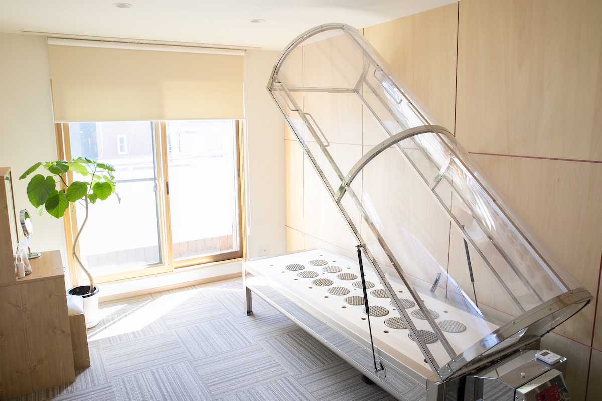 はじめに肩の付け根から手指、胸筋まで丁寧にほぐした後、体が脱力した状態でゆったりカプセルに入っていただきます。